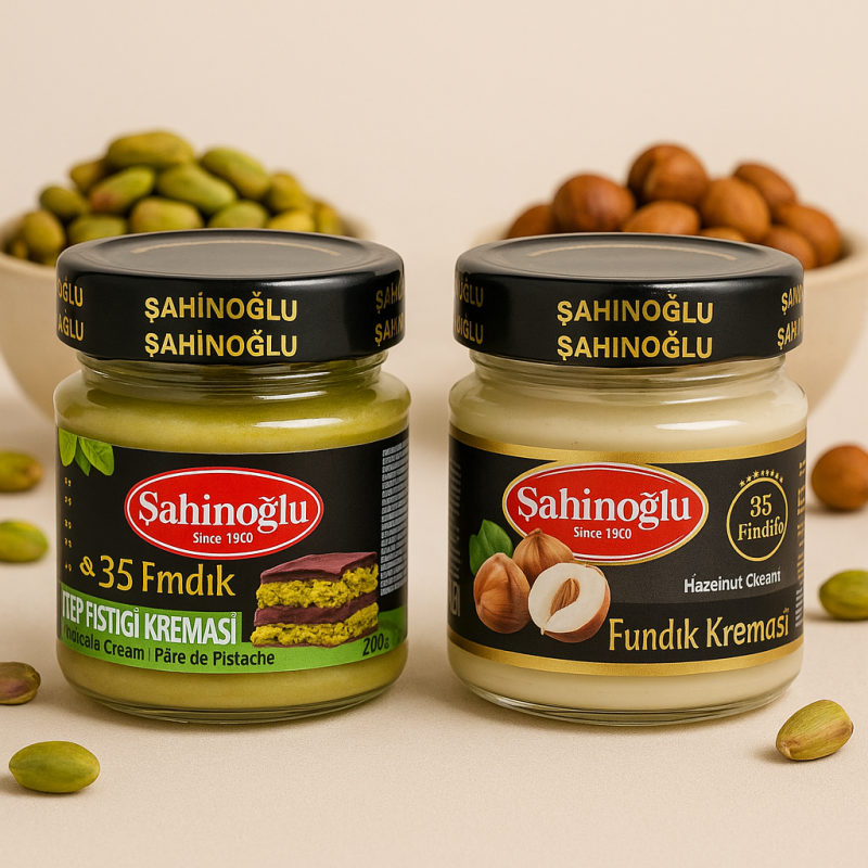 Découvrez la Crème de Noisette Sahinoğlu, élaborée avec passion depuis 1950. Sa recette généreuse contient 35% de noisettes soigneusement sélectionnées, offrant une saveur intense et une texture onctueuse irrésistible.